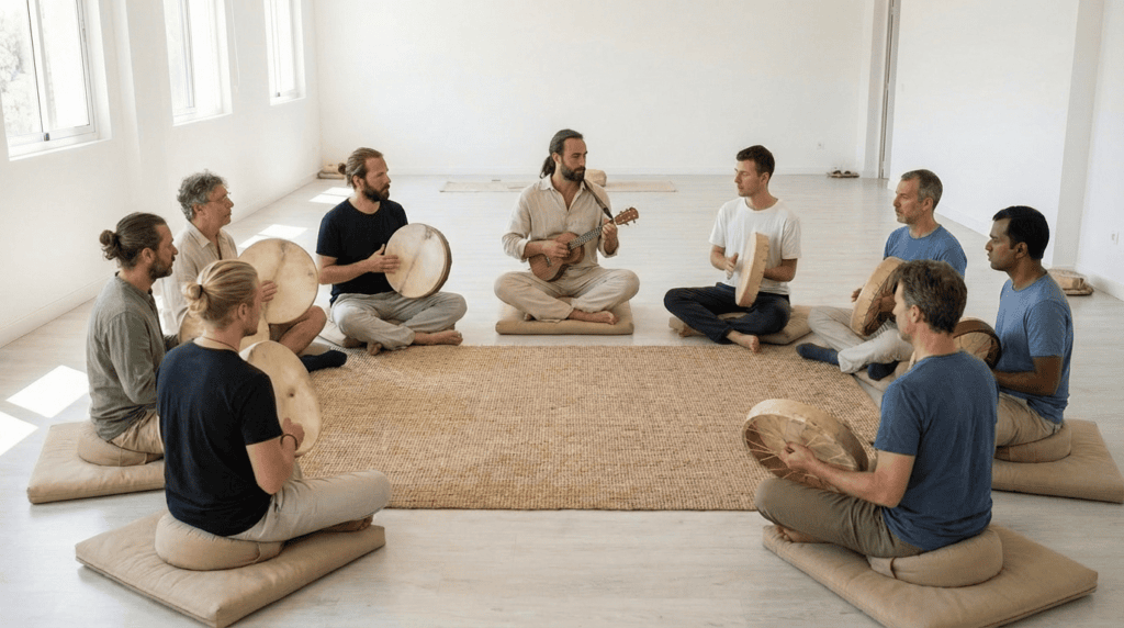 He specialises in using music, rhythm and voice as transforming tools, which are used in many of his programs. He was inspired in this by Yoginâm who guided him on this journey towards Optimal Living since 2006.